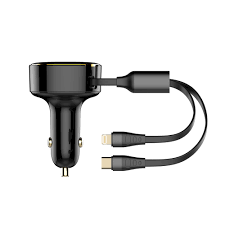 CAR CHARGER WITH TWO RETRACTABLE CABLES